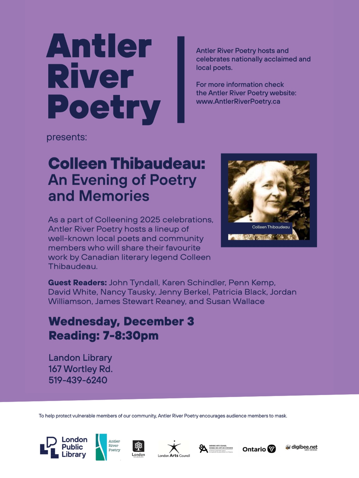 Antler River Poetry Presents — Colleen Thibaudeau: An Evening of Poetry and Memories